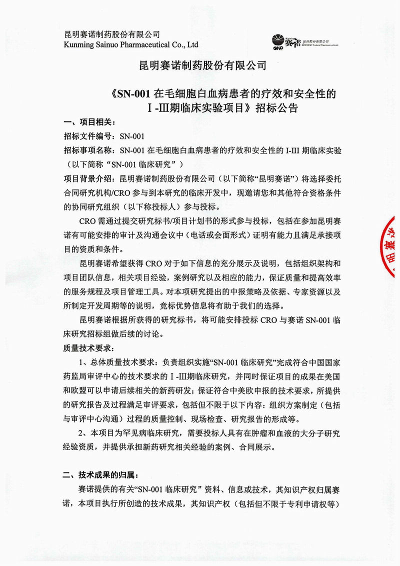 SN001項(xiàng)目招標(biāo)公告